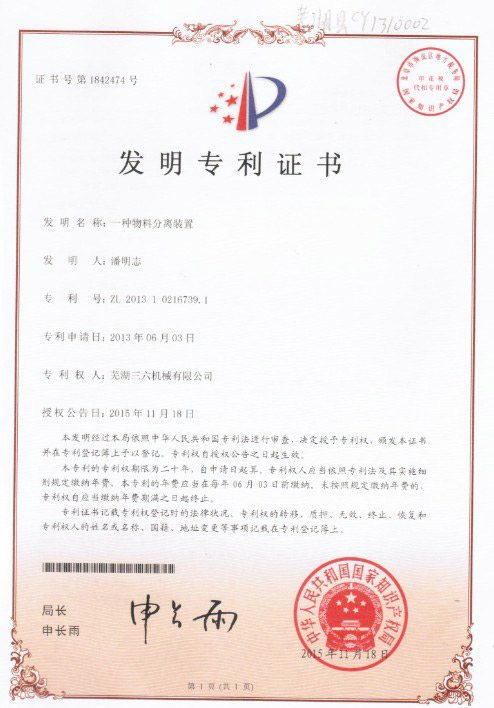 發(fā)明專利證書